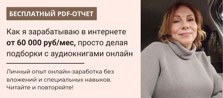 Решила поделиться опытом и написала PDF-отчет, в котором рассказываю, как можно начать зарабатывать в интернете, просто создавая жанровые подборки и загружая аудиокниги онлайн: