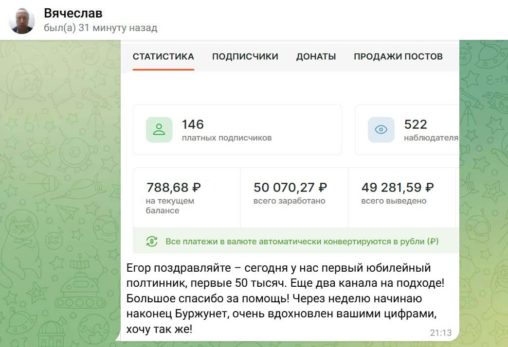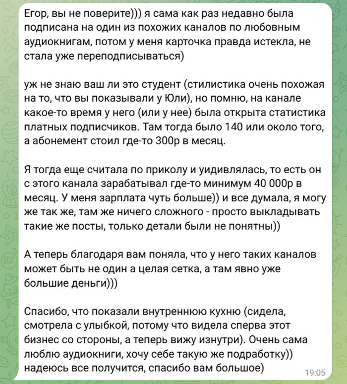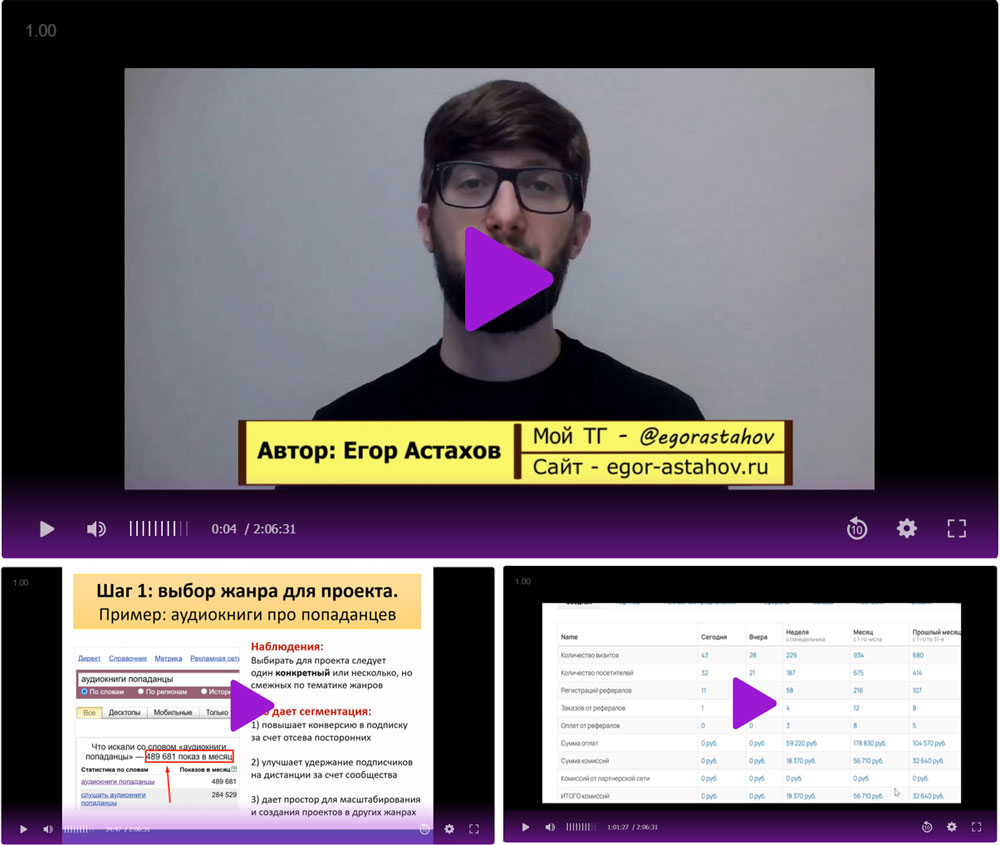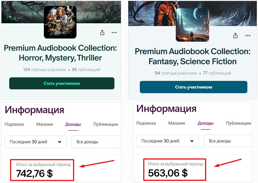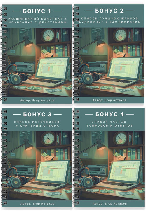 Здесь вас ждут отдельные приватные статьи (кейсы, отчеты, разборы) как по заработку на аудиокнигах, так и по другим моим бизнес-направлениям, которыми я занимаюсь вместе с подопечными прямо сейчас.