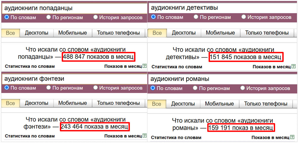 ➡️ Они имеют сотни тысяч запросов поиска в месяц (скриншоты из Яндекс Вордстата выше не дадут соврать).