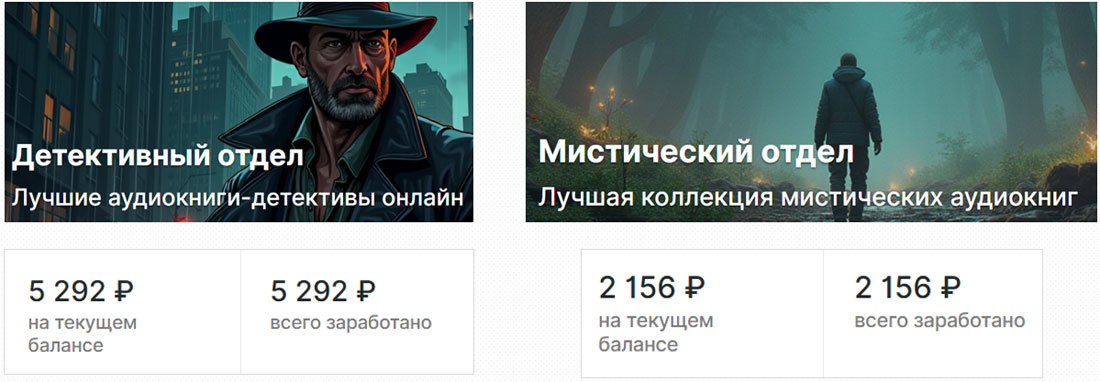 Они просто изучают аудиокниги в вашем каталоге, рядом ненавязчиво крутятся рекламные блоки, и вы получаете деньги за их показы.