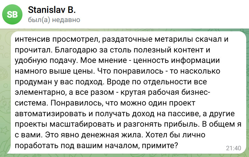 Более того, сразу хочу сказать. Если вдруг вы поймете, что тема вам не подходит, я спокойно сделаю вам возврат. Я сам в свое время проходил разные курсы, платил деньги, и не всегда полученная информация оказывалась мне полезна. Поэтому считаю такой подход адекватным и справедливым.